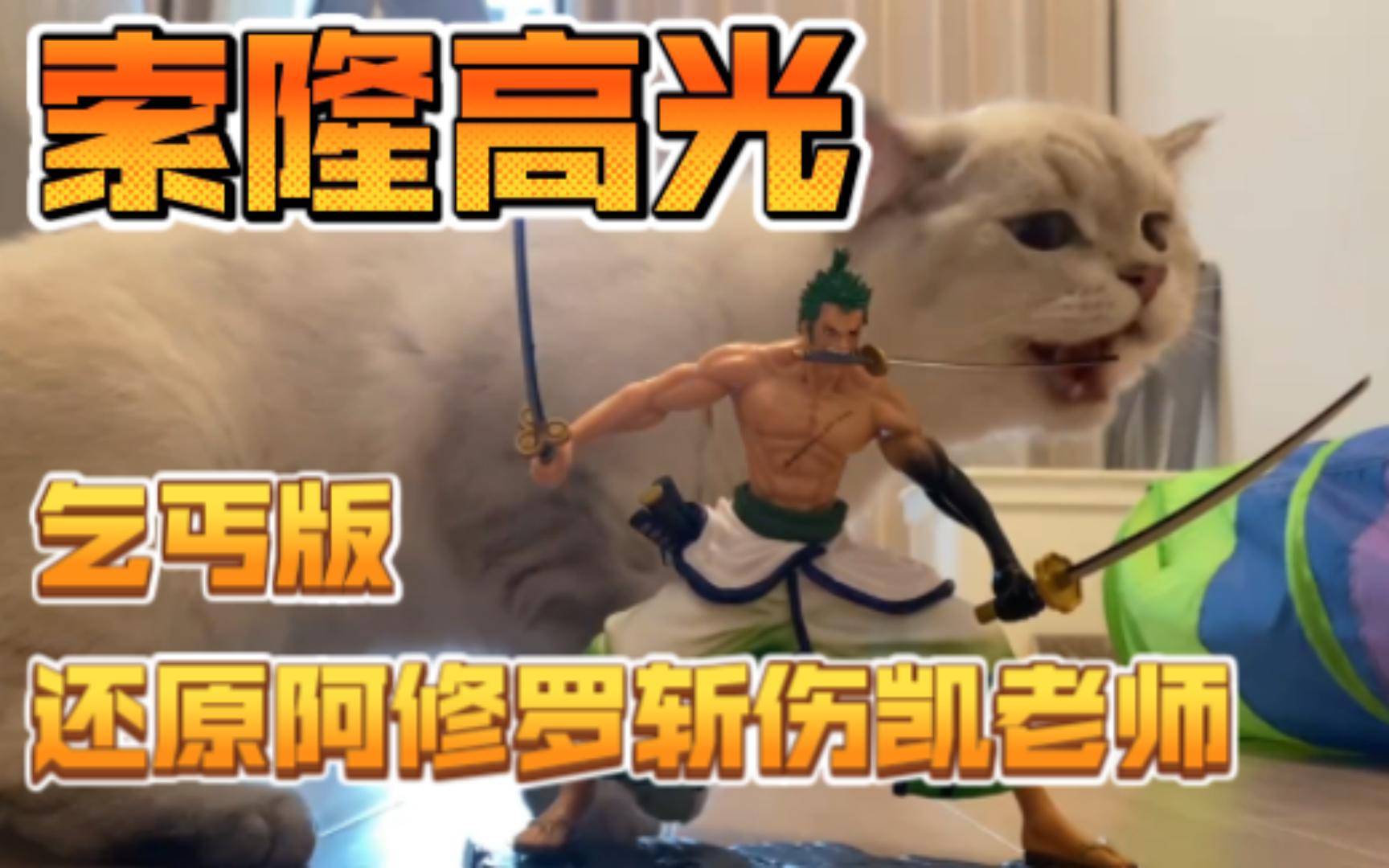 百分百还原索隆高光时刻,九刀流鬼气阿修罗拔剑斩伤凯多,猫咪友情客串