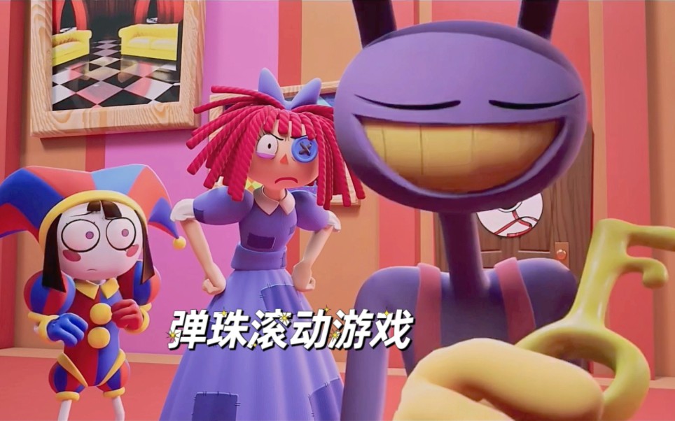 神奇数字马戏团的动画人物,玩弹珠滚动游戏
