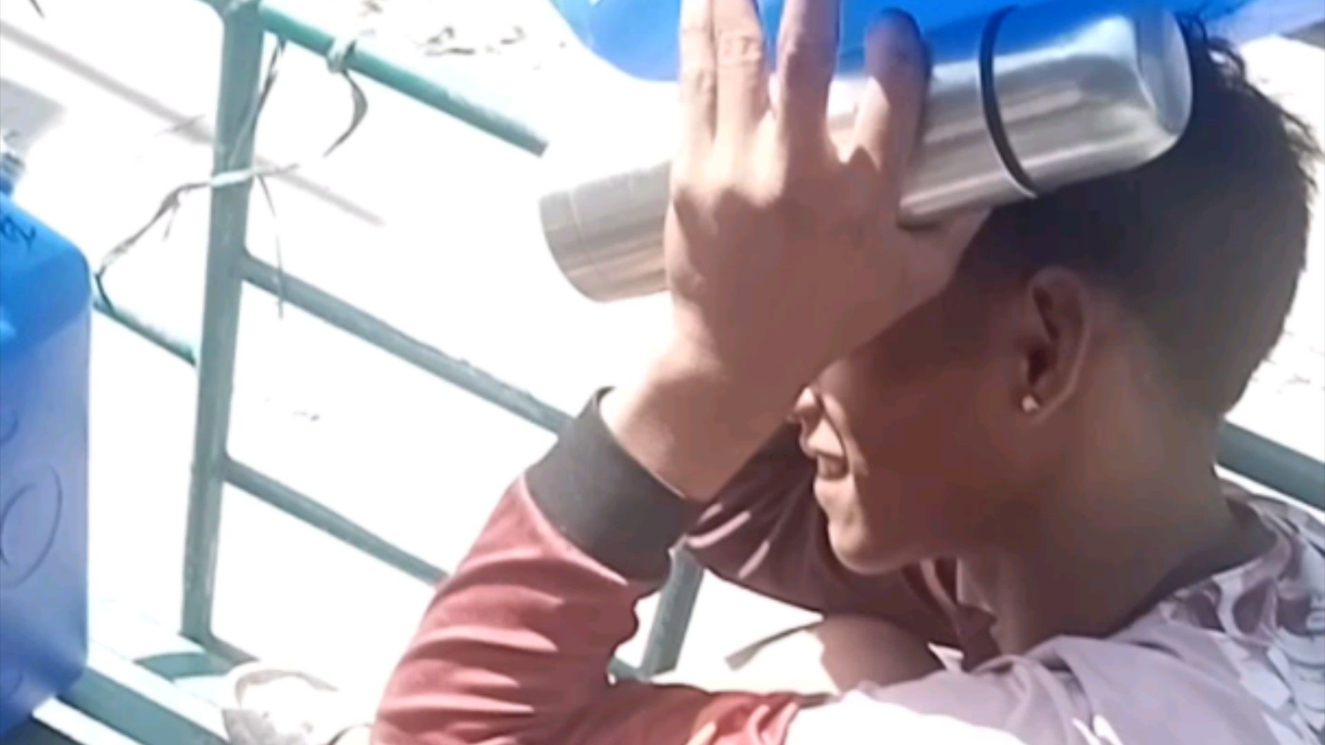 老爸假装剪掉儿子耳朵