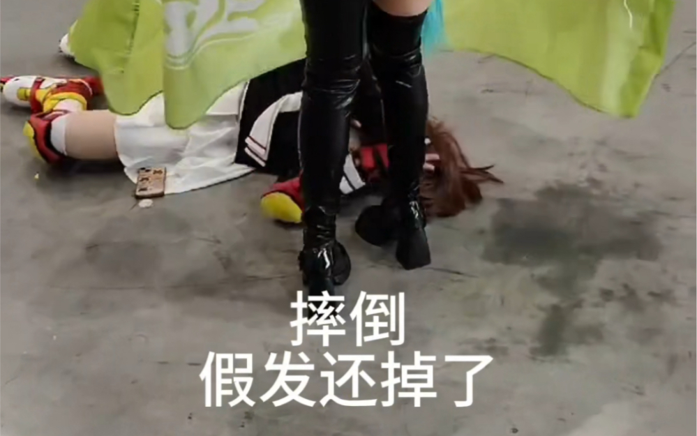 在漫展上穿小樱轮滑鞋摔倒