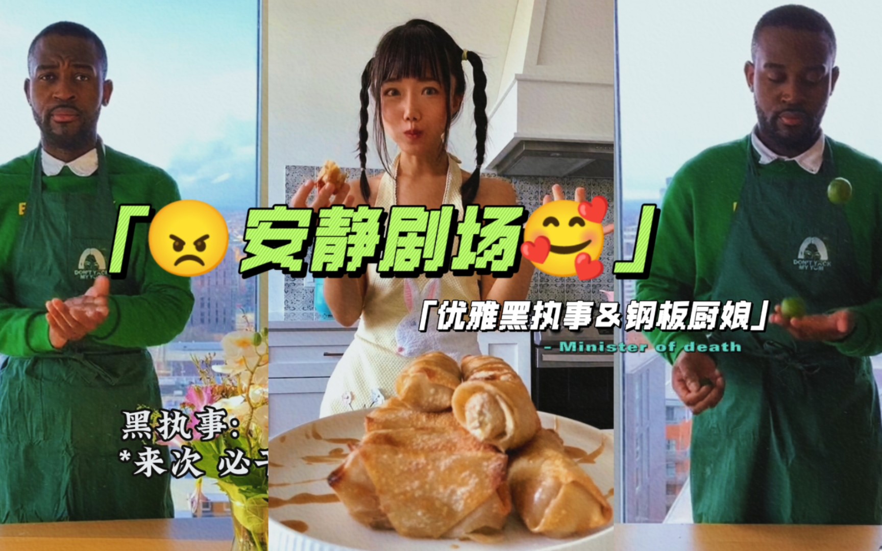《安静剧场|优雅黑执事·钢板厨娘|口蘑鸡蛋与南瓜汤》