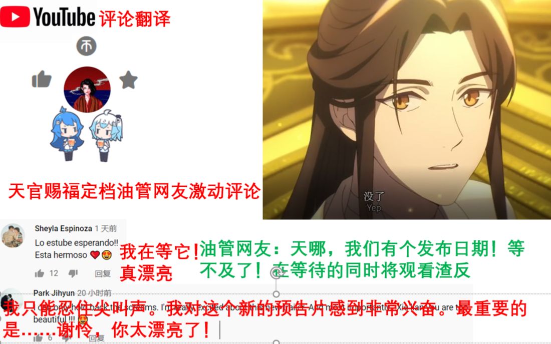 油管网友看【天官赐福】定档PV评论翻译,油管网友表示兴奋期待激动快乐尖叫!
