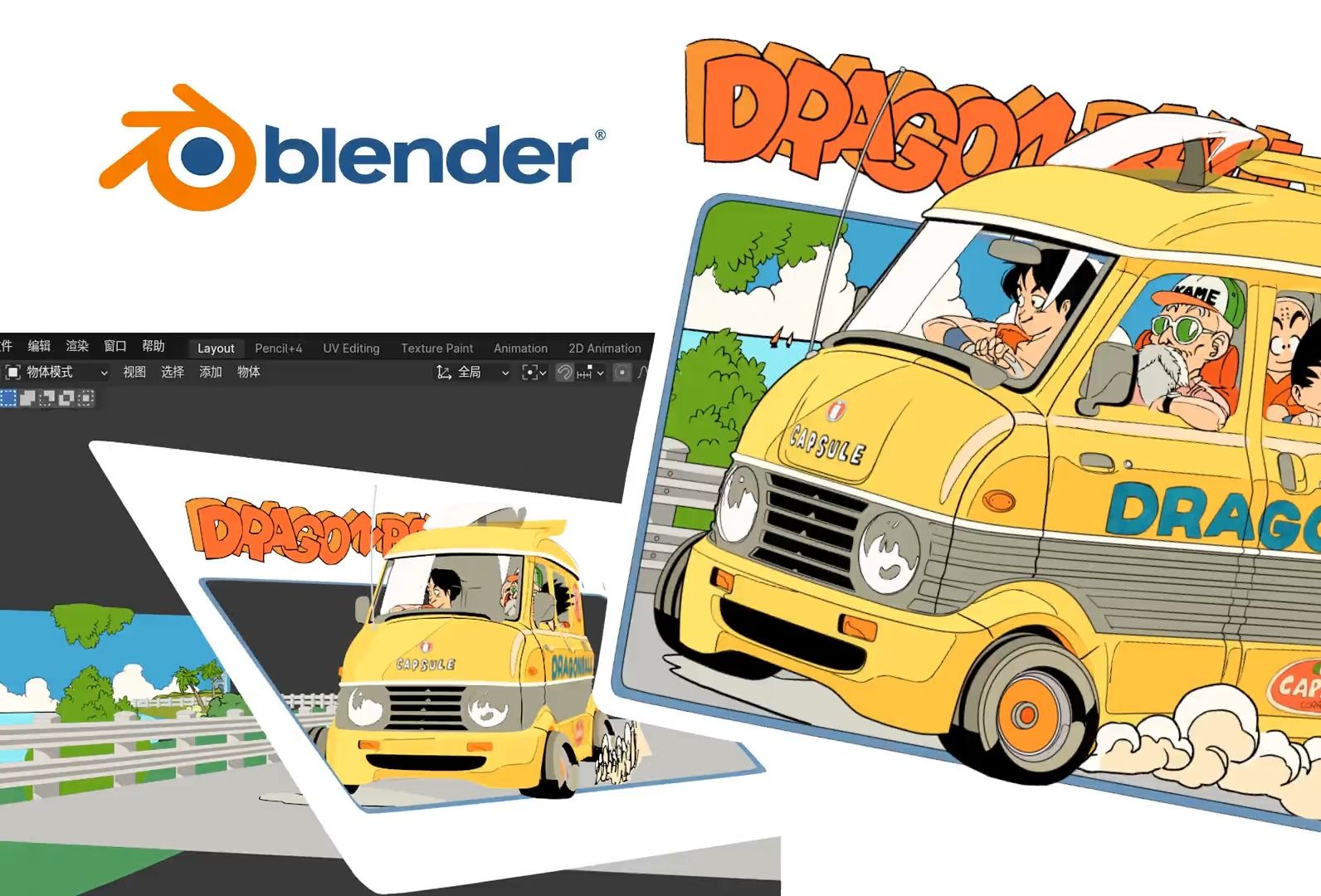致鸟山明先生,Blender 蜡笔小动画,龟仙人的面包车