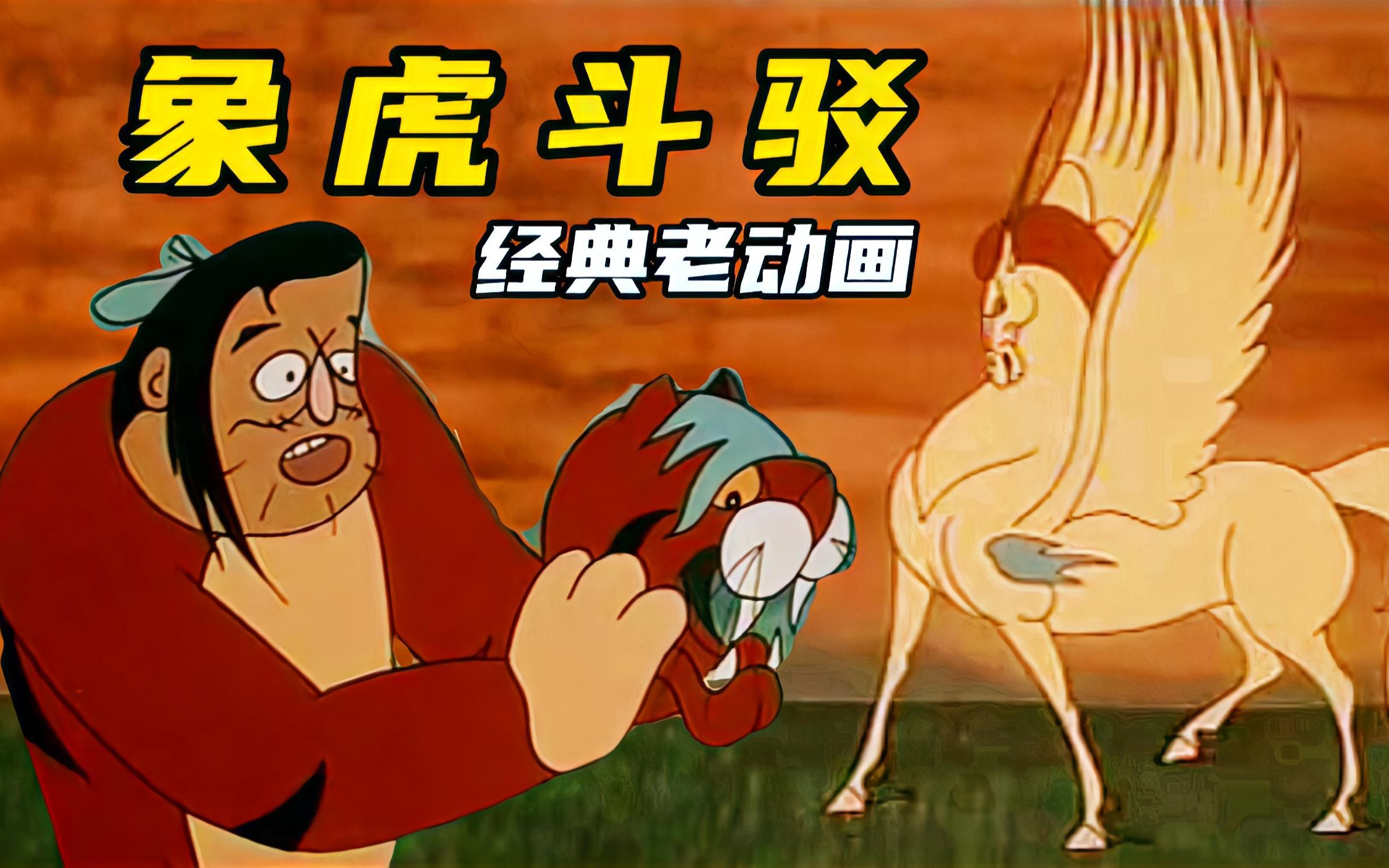 愚昧莽汉不知死活,居然假扮老虎想吃上古神兽“驳”,结果玩大了,经典老动画《象虎斗驳》解说