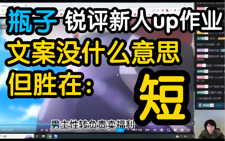【瓶子周五杂谈回】瓶子锐评动漫区新人作业:文案没什么意思,但胜在短(