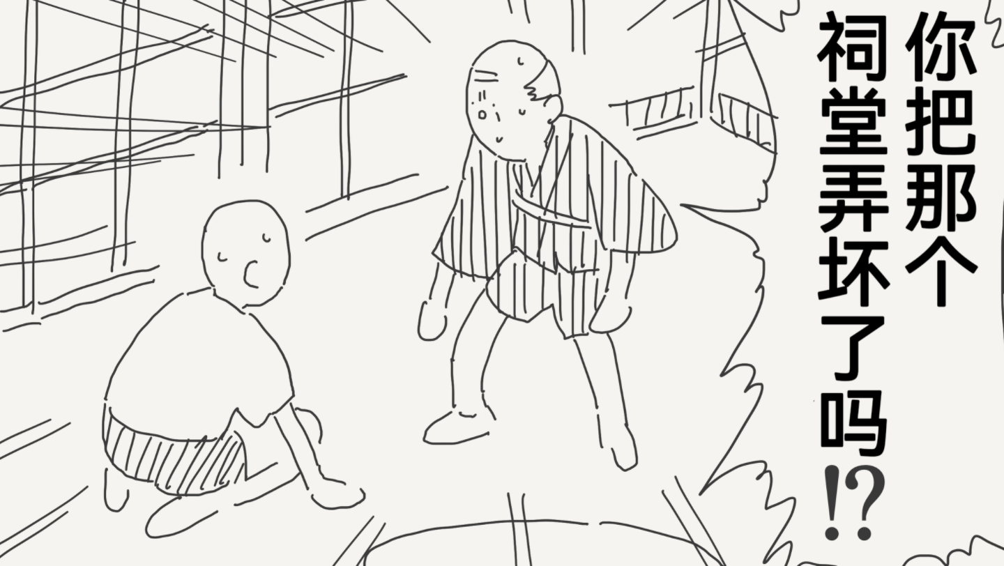 因为破坏了村里的祠堂而被一脸惊恐的老登说我要被带走了