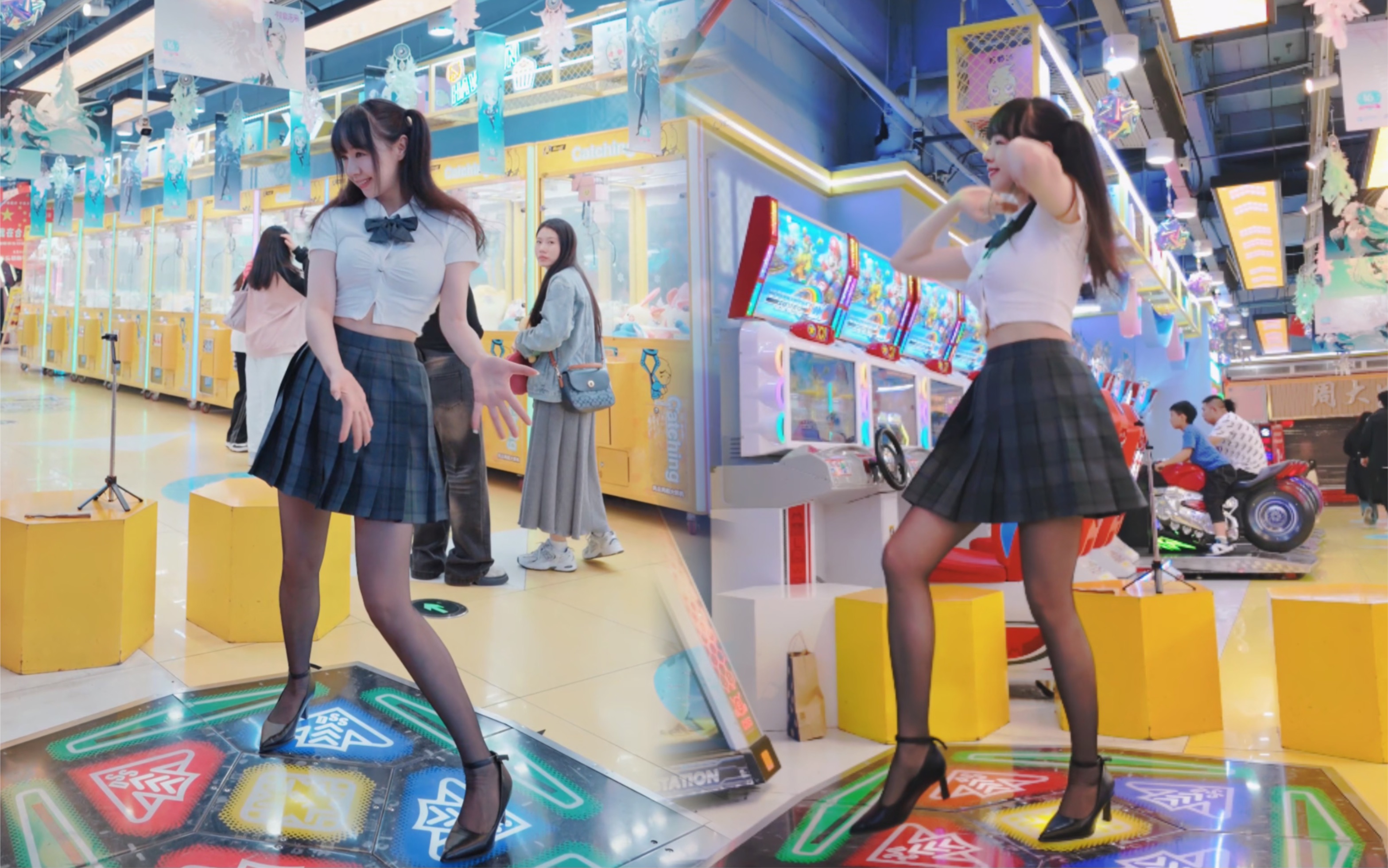 外面下雨,跳舞机却热热的,双马尾辣妹又出来炸街咯