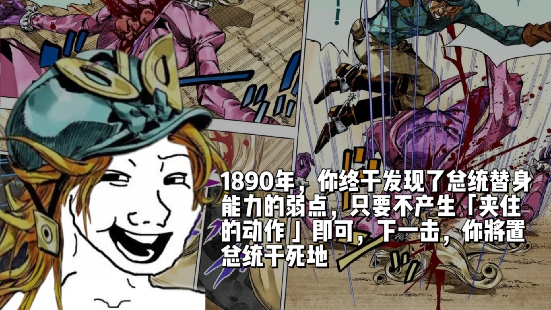 1890年,你终于发现了总统替身能力的弱点,只要不产生「夹住的动作 」即可,下一击,你将置总统于死地