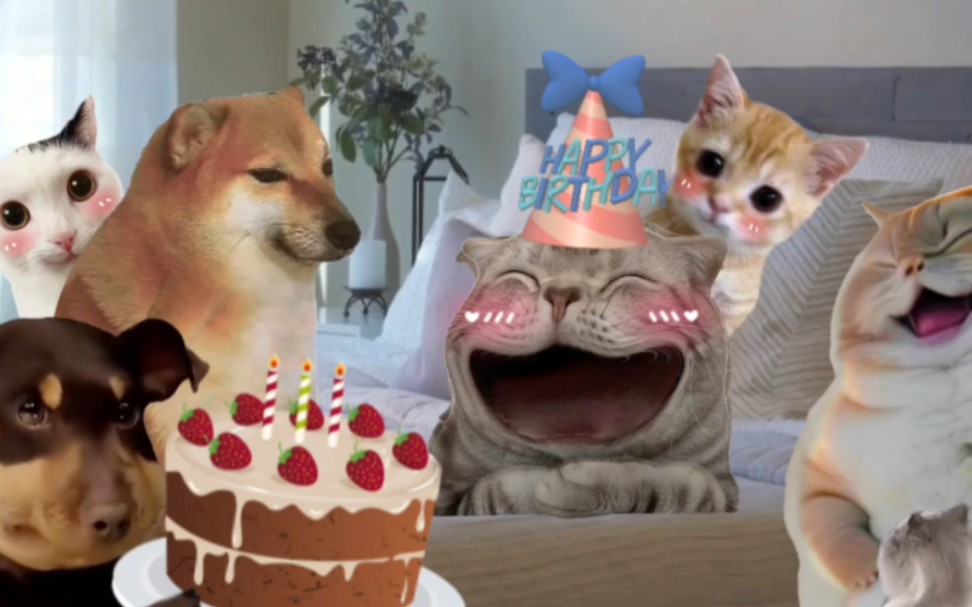 cheems钓鱼给小猫们吃