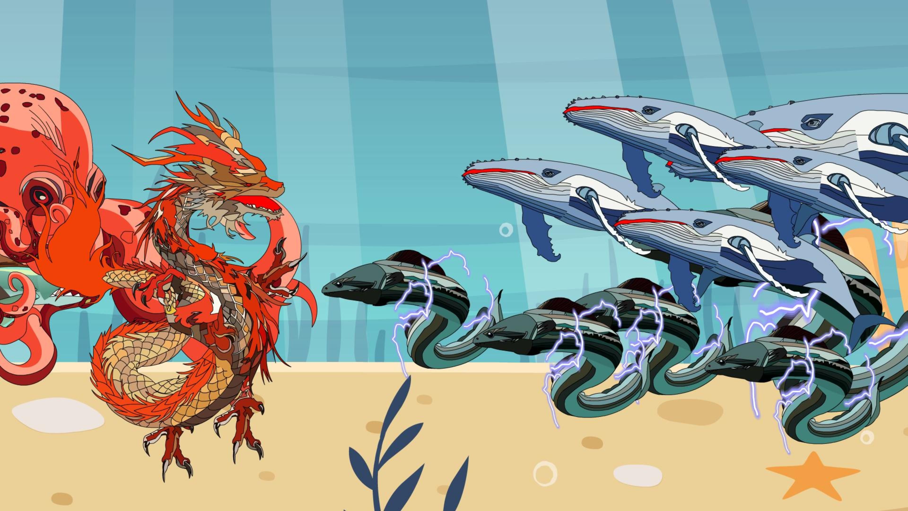 巨蟒带领西游龙宫龙族和花果山猴子回到地球,将朱雀白虎击败