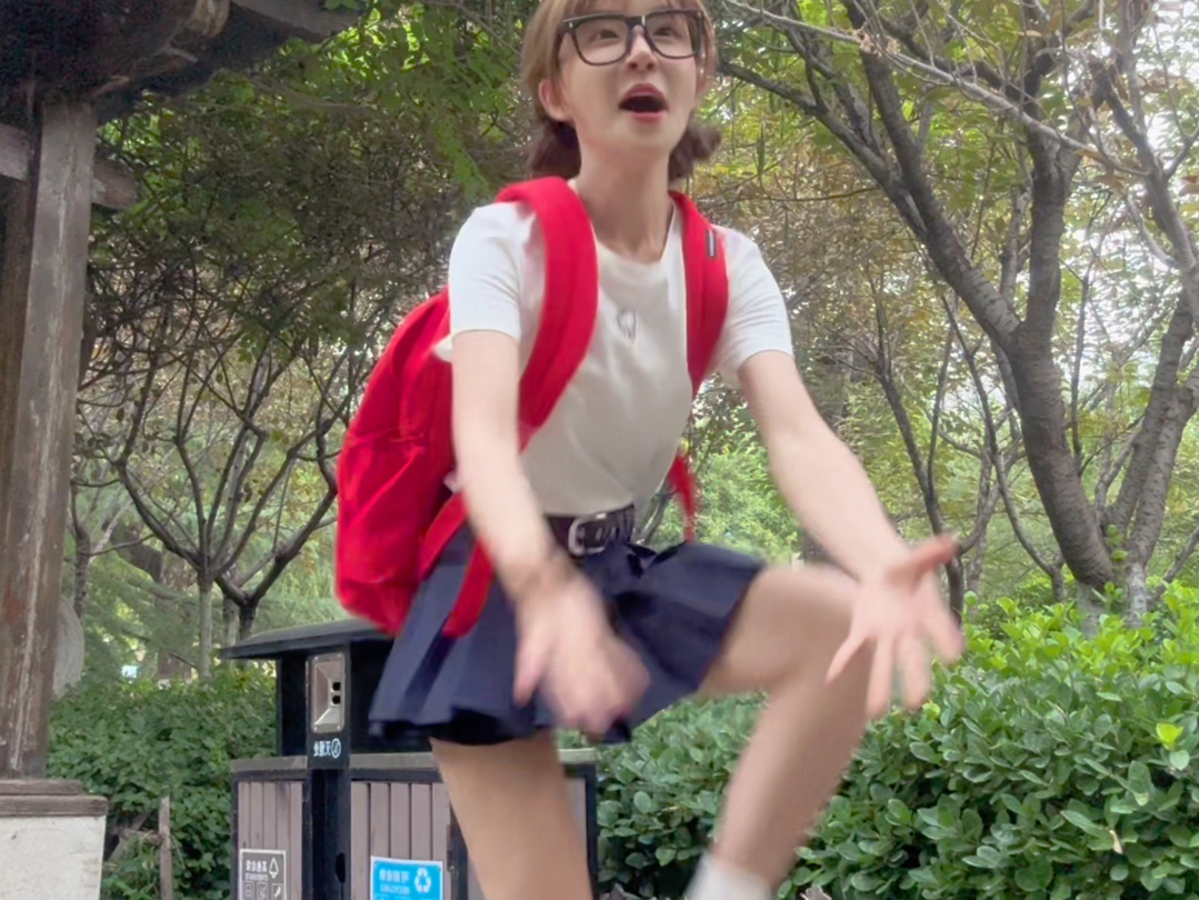 湖北武汉一女孩在校园内蒙着眼睛, 站路边“自由拥抱”