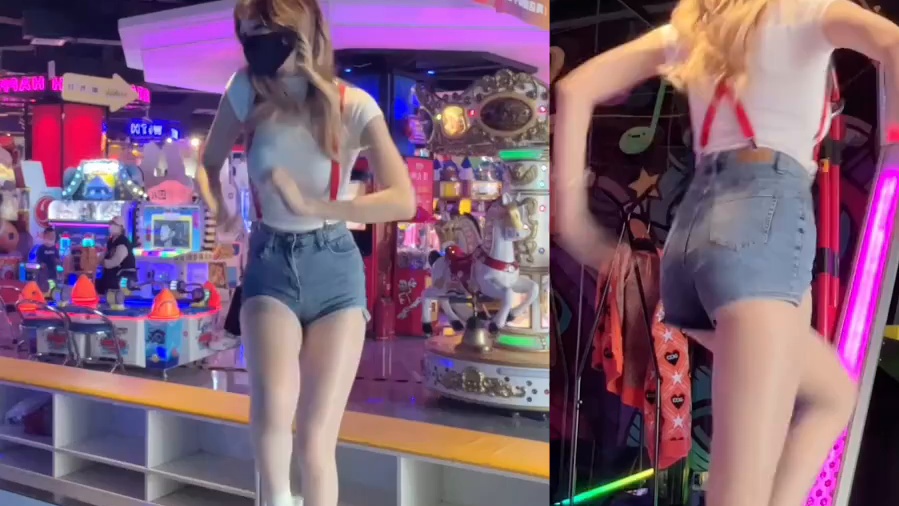 超短裤露脐吊带,第一视角,超近距离看跳舞机小姐姐up down翻跳
