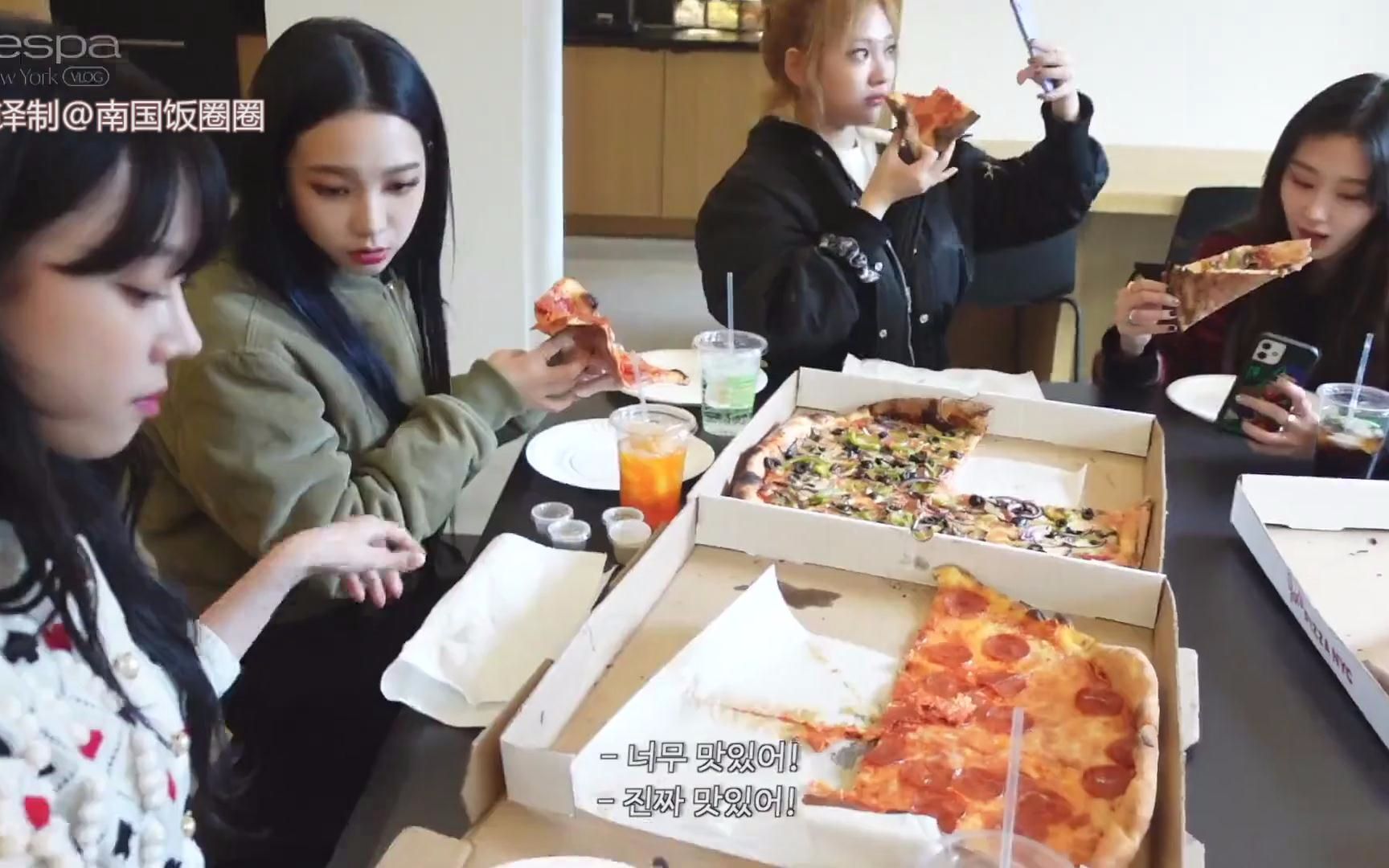 聚在一起吃披萨的aespa