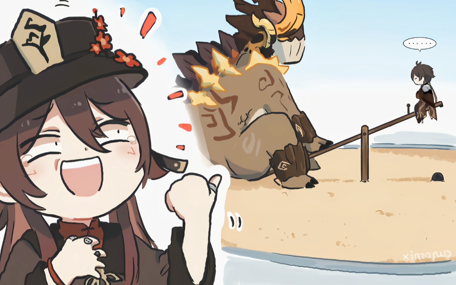 钟离:到我来翻了。胡桃:哦,是给我介绍的客户吗?画师《心脏弱真君》