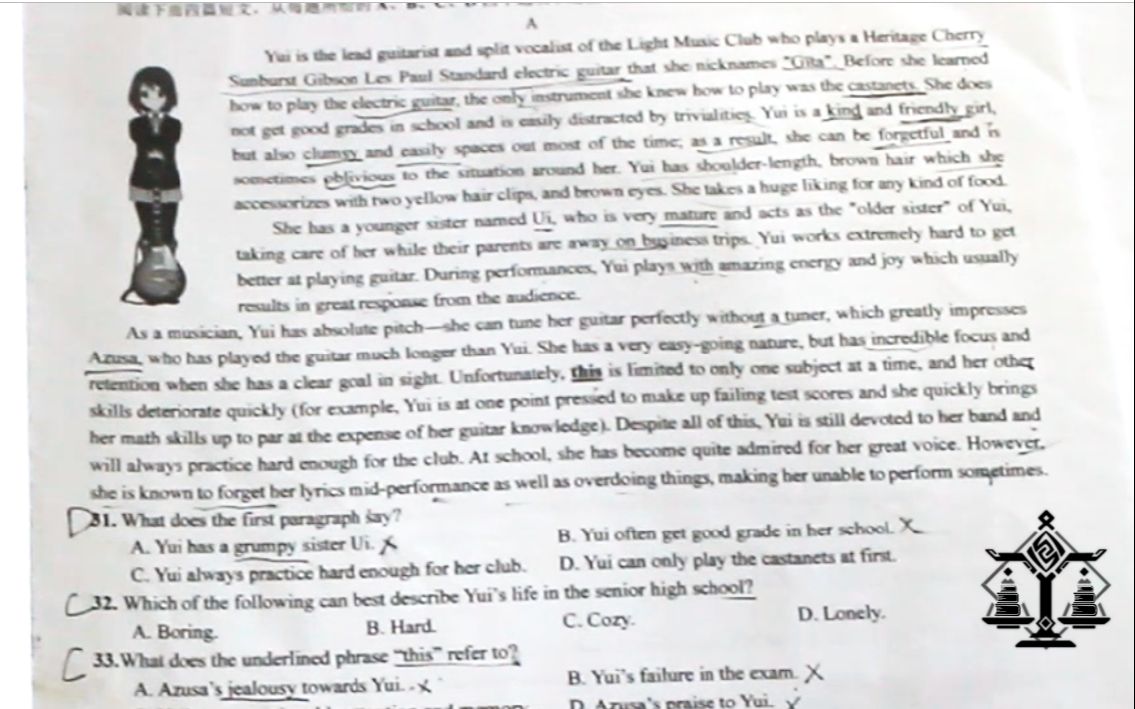 英语试卷上惊现轻音平泽唯!