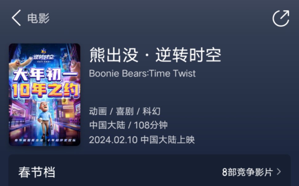 恭喜 熊出没•逆转时空 票房超过长安三万里 成为内地动画电影票房第二!