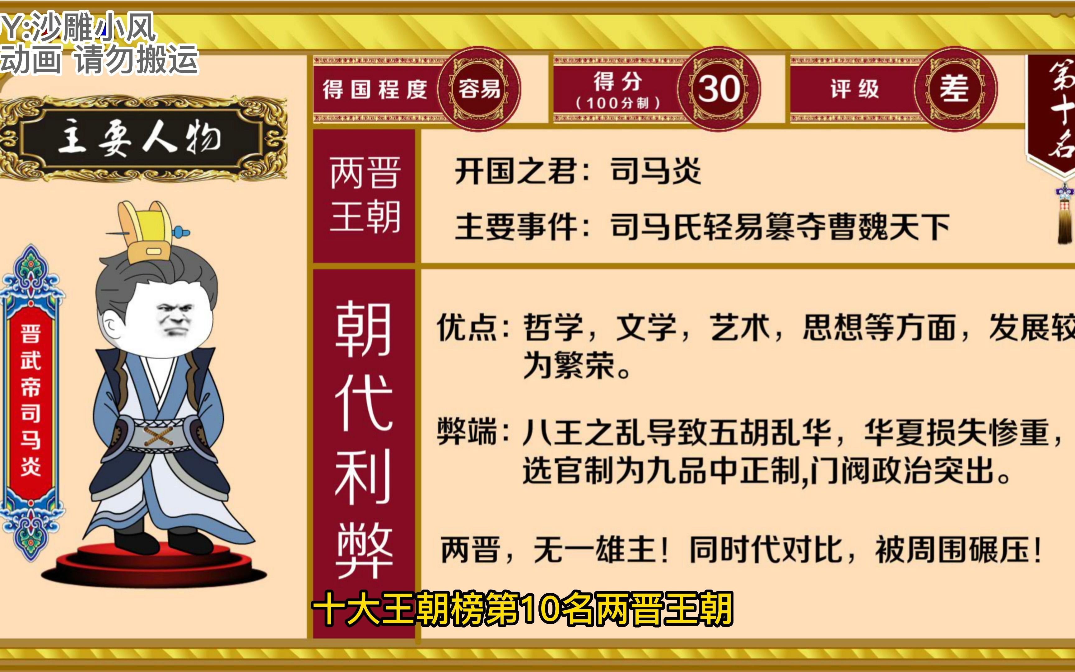 第二十集【皇帝排行榜】十大朝代排行榜开启,两晋王朝垫底