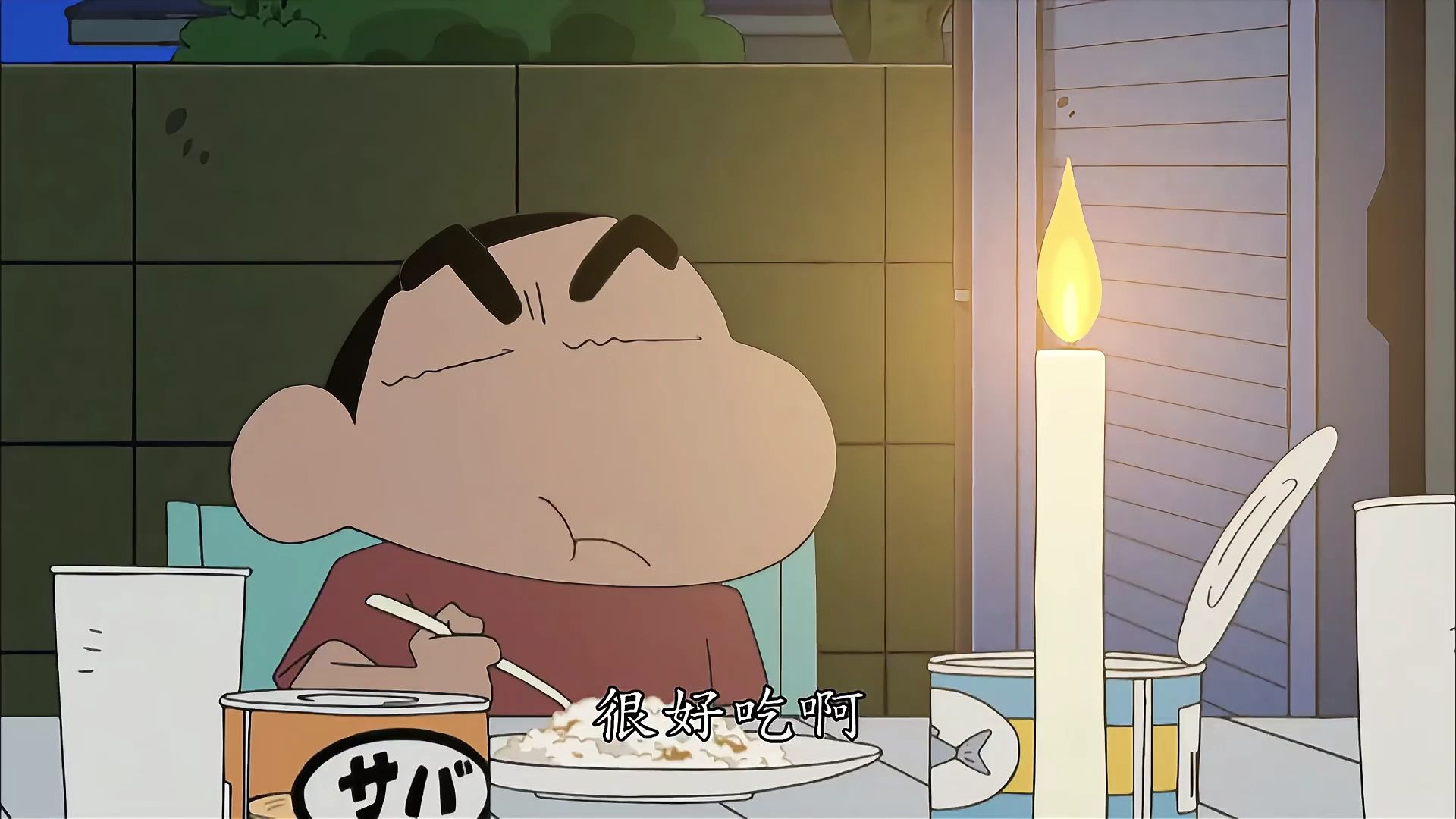 【蜡笔小新】广志生火做饭,吃螃蟹肉罐头喝冰凉凉的啤酒哦。