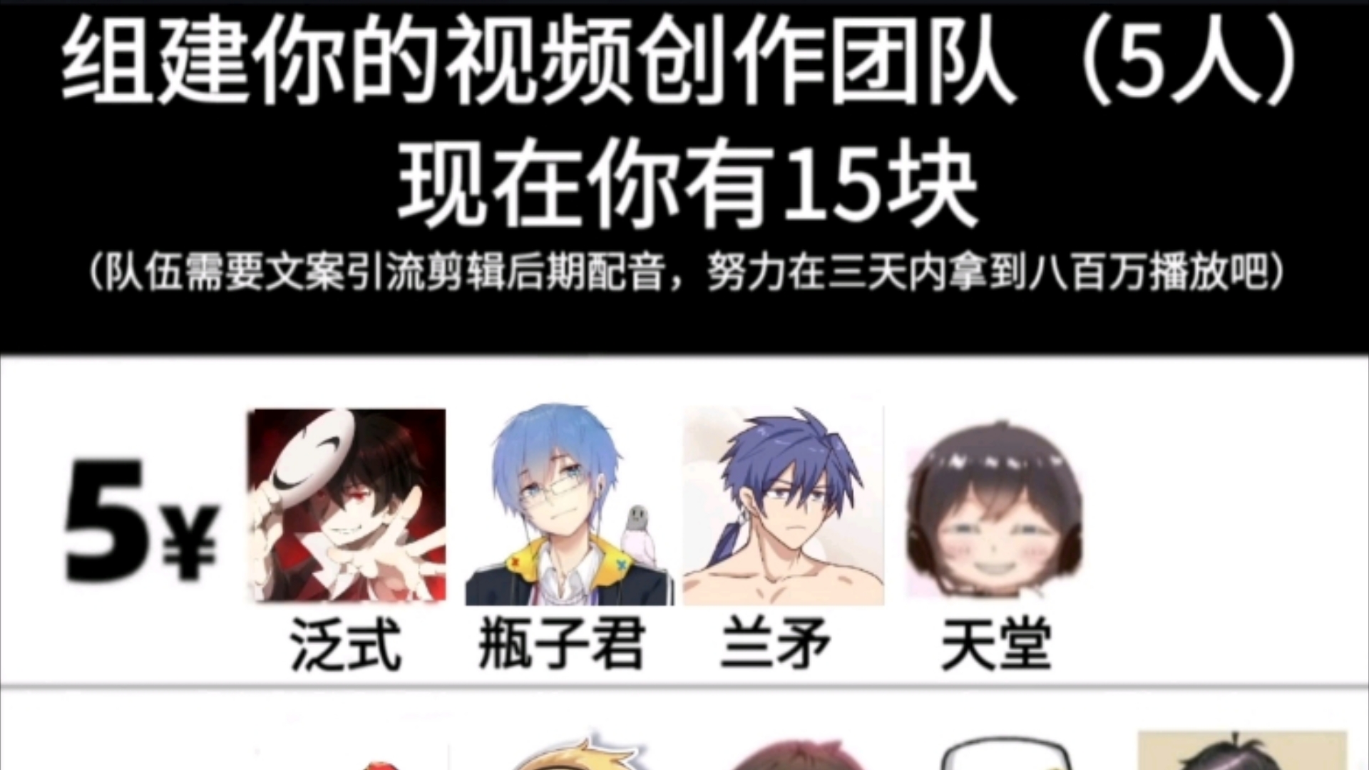【二次元】你有十五块,请组建你的队伍(每个级别只能选一个)