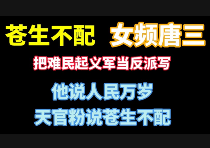 女频唐三:把难民当反派写。他说人民万岁,天官粉到处评论说苍生不配!!