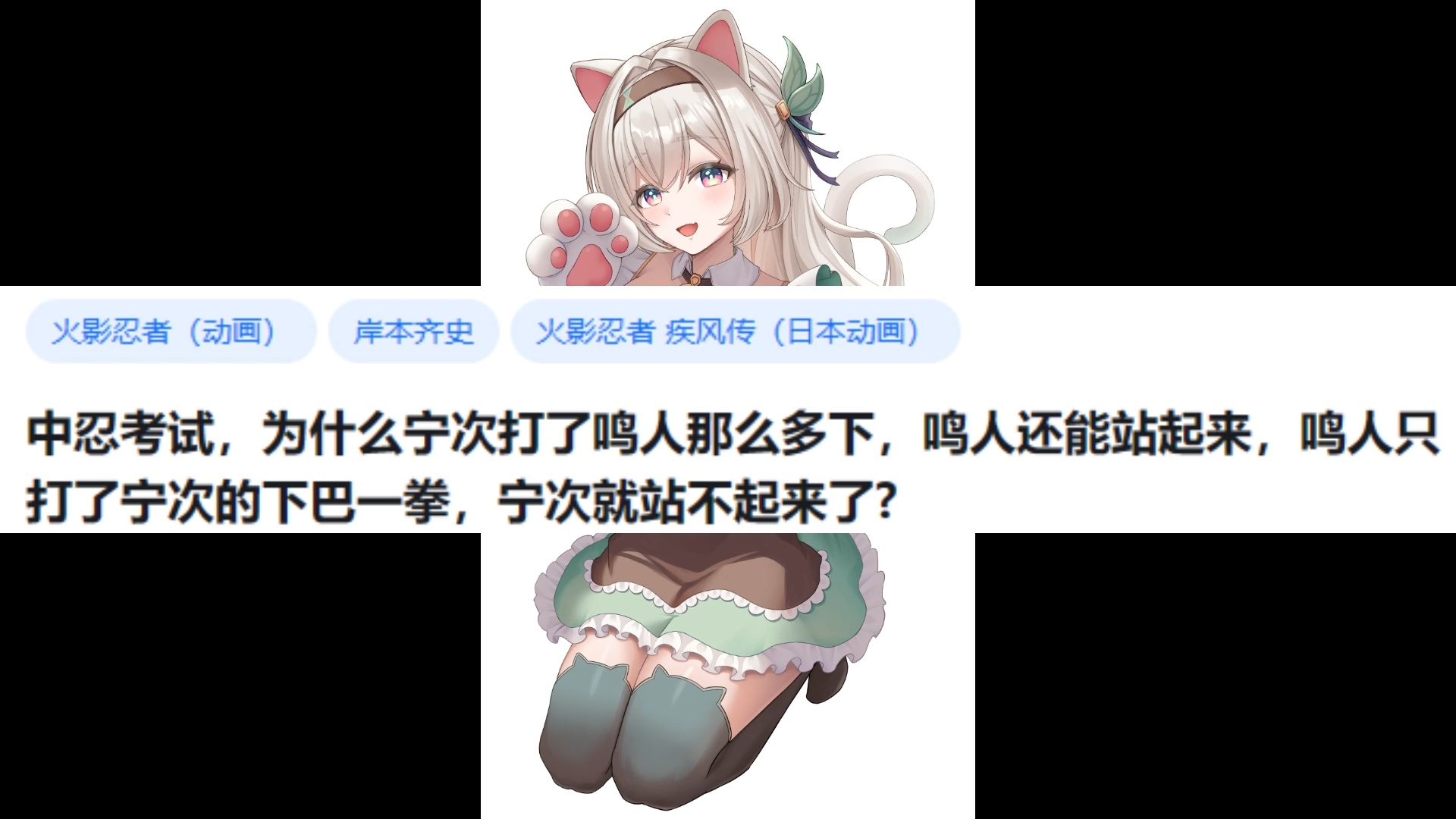 中忍考试,为什么宁次打了鸣人那么多下,鸣人还能站起来,鸣人只打了宁次的下巴一拳,宁次就站不起来了