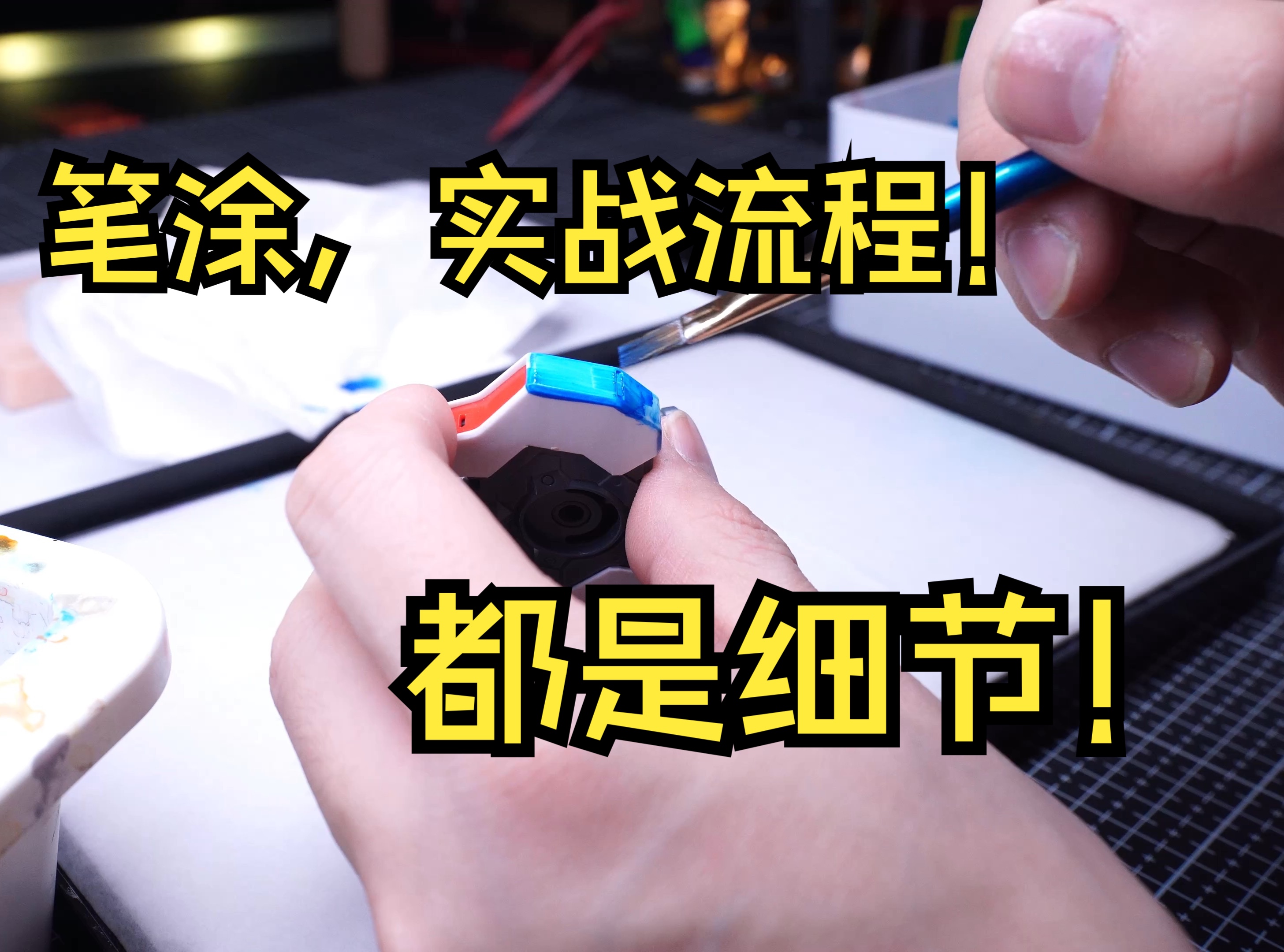 【笔涂教程】第六期 笔涂必看! 笔涂具体操作流程 高达模型手涂笔涂上色教程 拼装模玩涂装新手教程