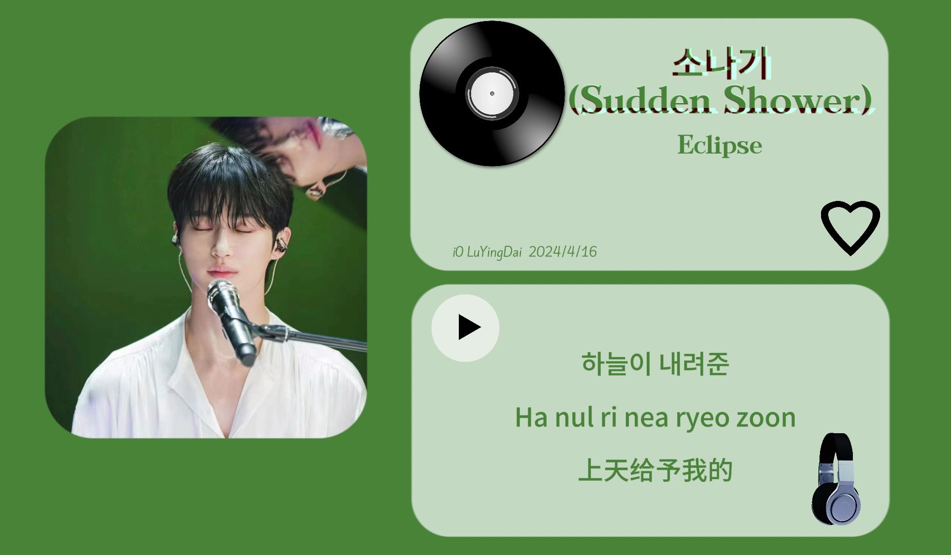 【OST】Bian Youxi Eclipse-You & I/Chinese and Korean subtitles/🏃💙Carrying Sun Jae OST PART.1
