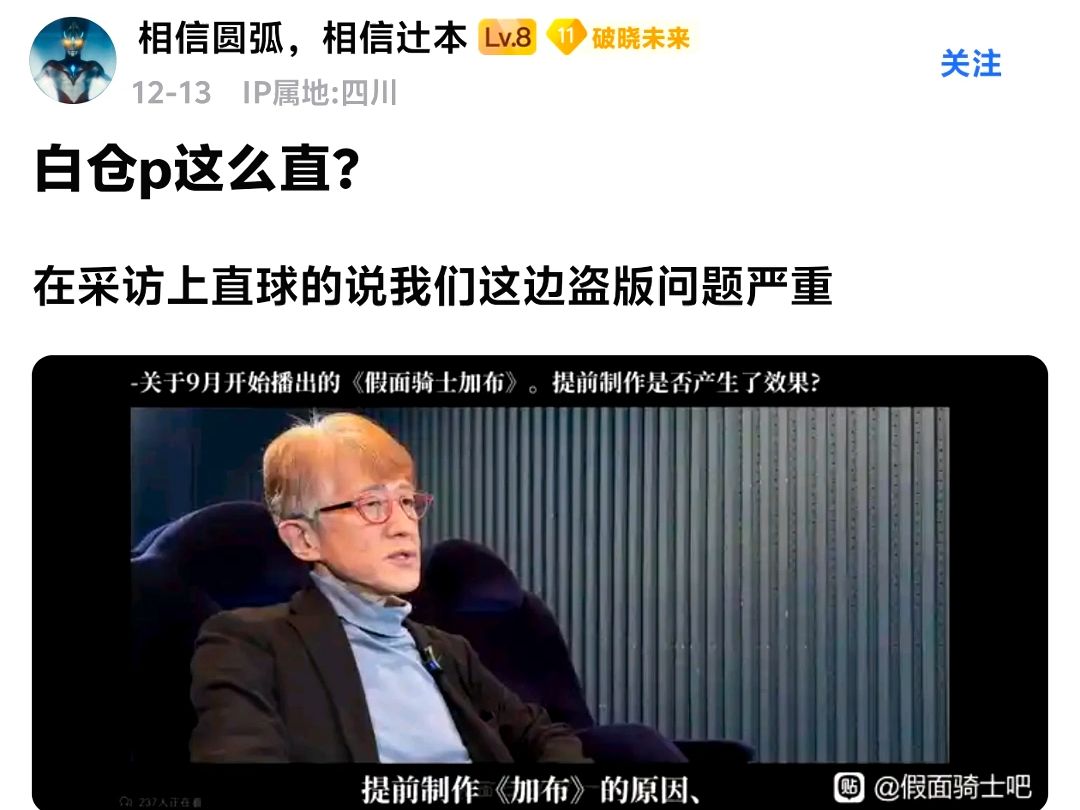白仓p这么直球?直接说我们这边盗版问题最为严重#假面骑士加布