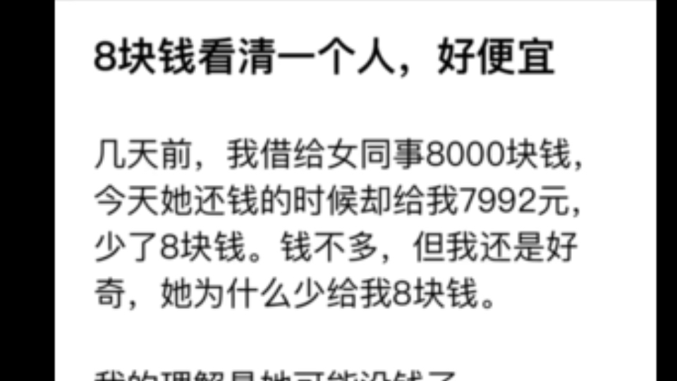 【顶级神贴】8块钱,认清一个人,好便宜。