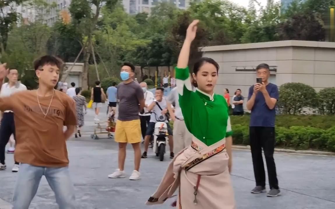 四川成都21岁女孩跳锅庄,引来上1000路人学习,这舞姿真不敢相信