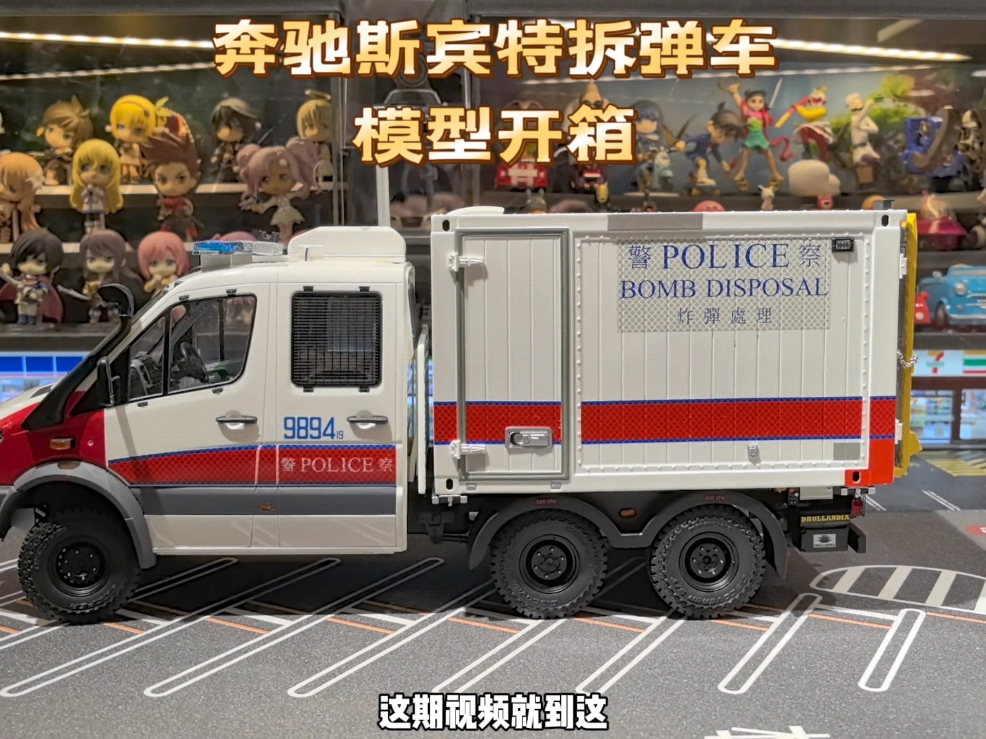 奔驰斯宾特香港警车EOD拆弹车树脂模型开箱,比例1:18