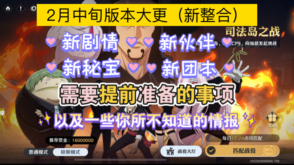 【航海王壮志雄心】2月中旬迎来全新版本,司法岛团本常驻,新剧情,新秘宝积分换红装!
