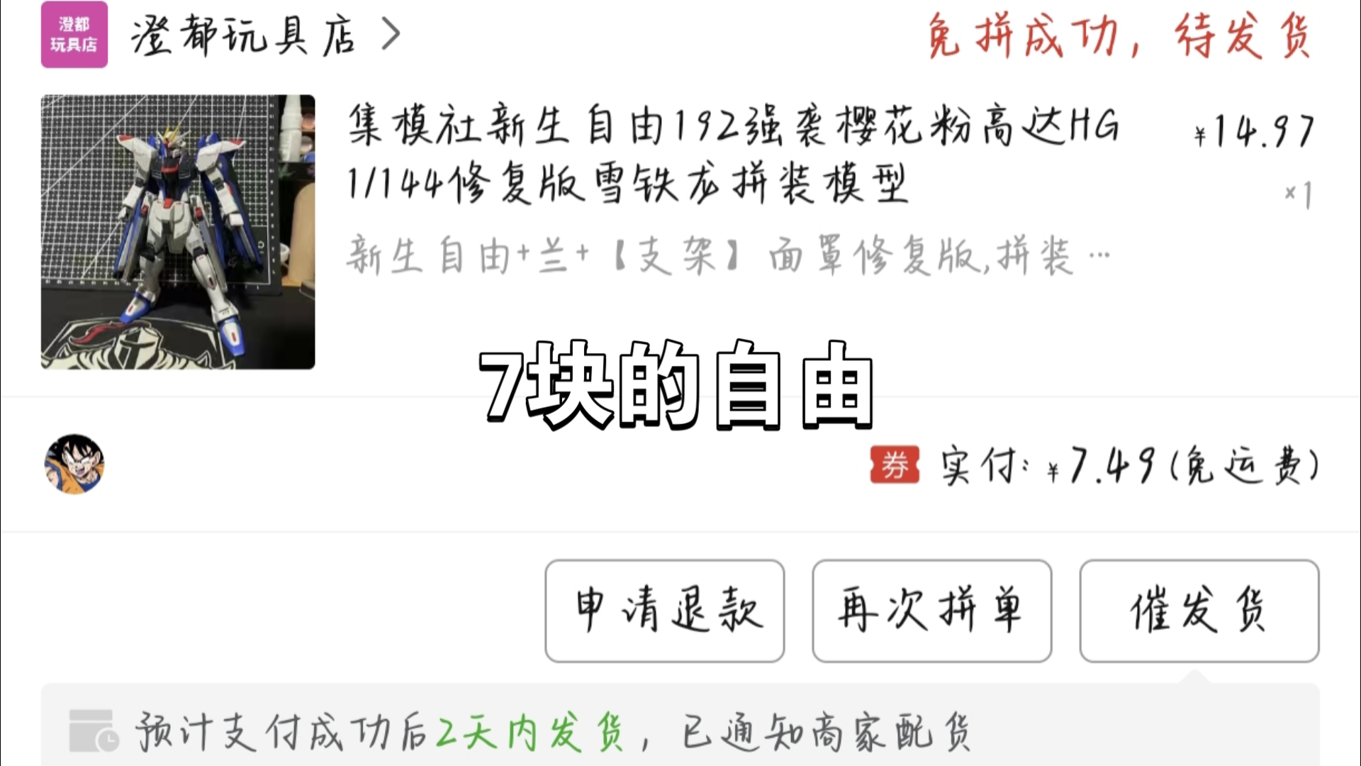 今天教大家每天怎么用几块购买答辩高达模型,7块的自由真香