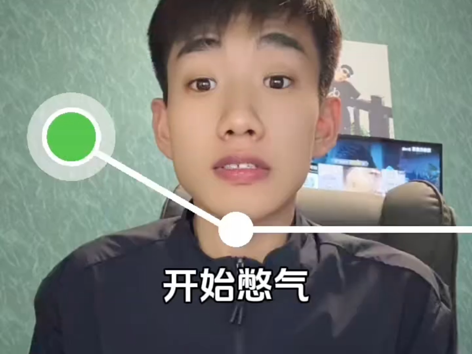 一副胸有成竹,无所畏惧的样子,他预示到20秒后有人把他推进去!