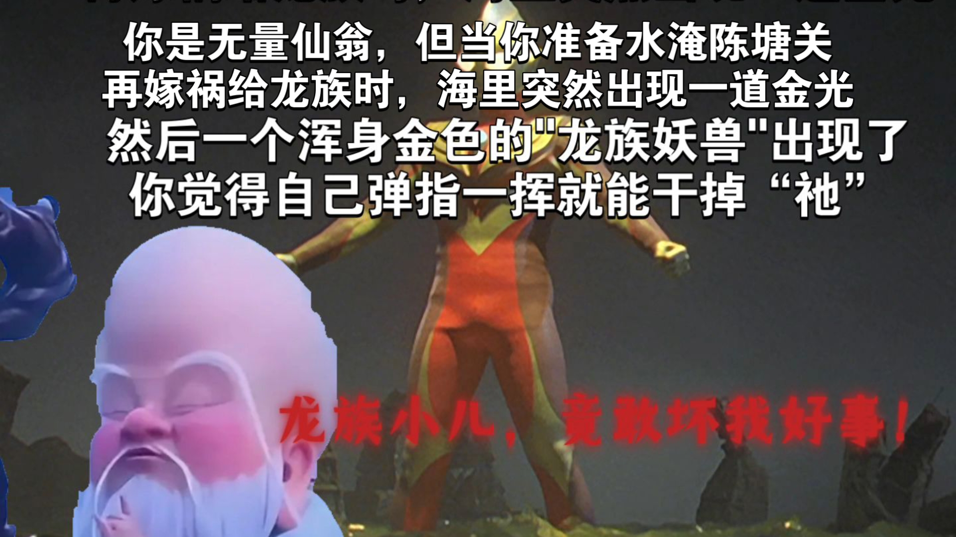 你是无量仙翁,但当你准备水淹陈塘关再嫁祸给龙族时,海里突然出现一道金光然后一个浑身金色的"龙族妖兽"出现了你觉得自己弹指一挥就能干掉“祂”