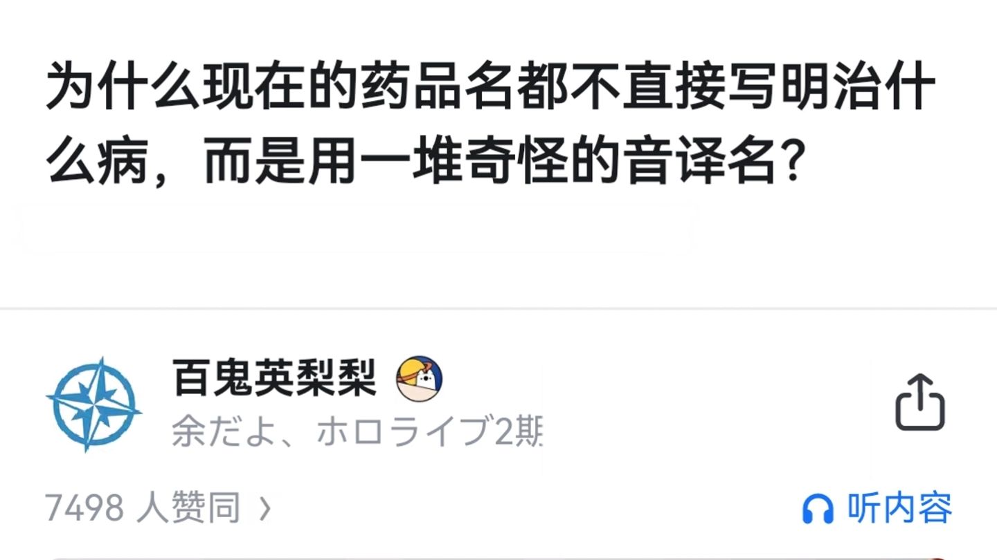为什么现在的药品名都不直接写明治什么病,而是用一堆奇怪的音译名?
