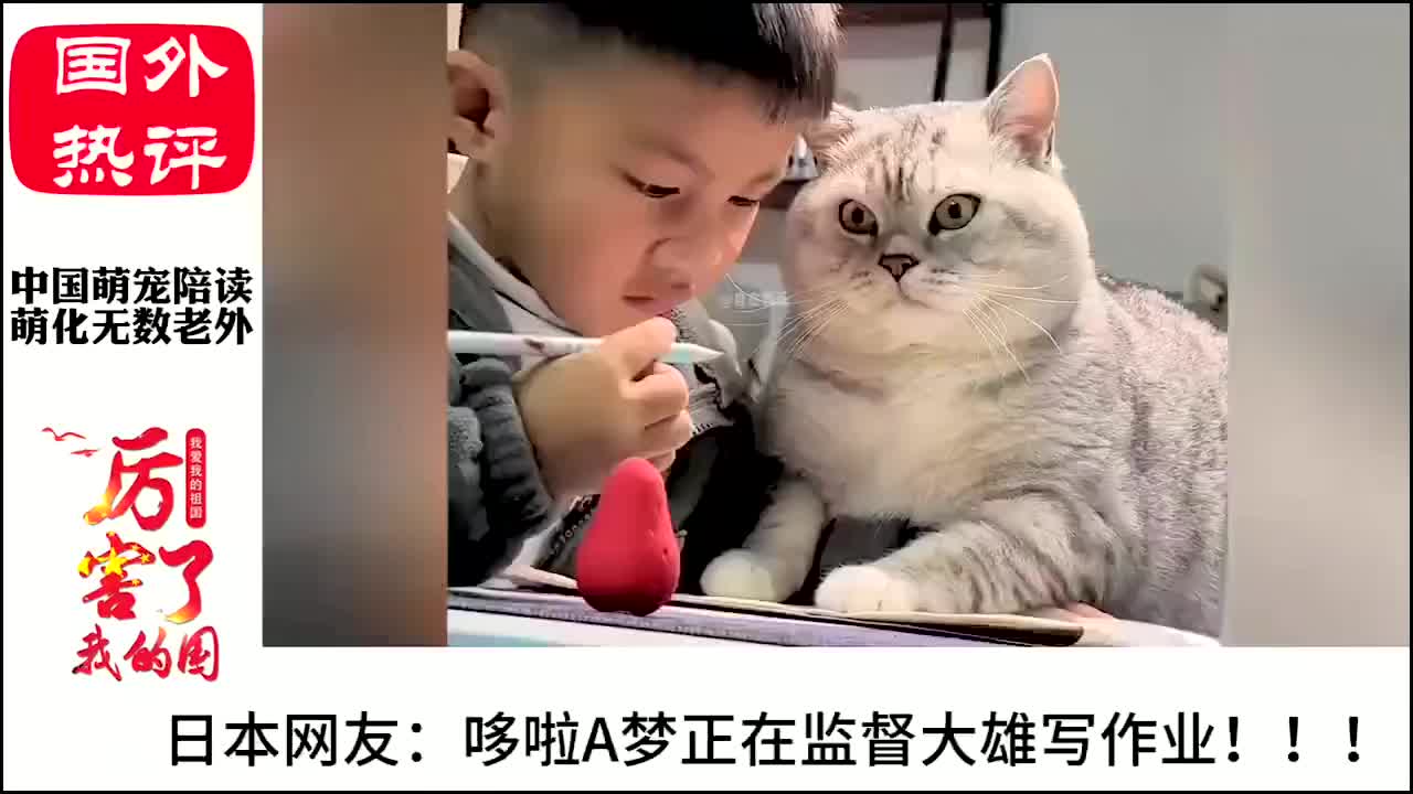 老外看中国萌宠陪主人学习 -它们偷偷进化了吗,像是严厉的老师!