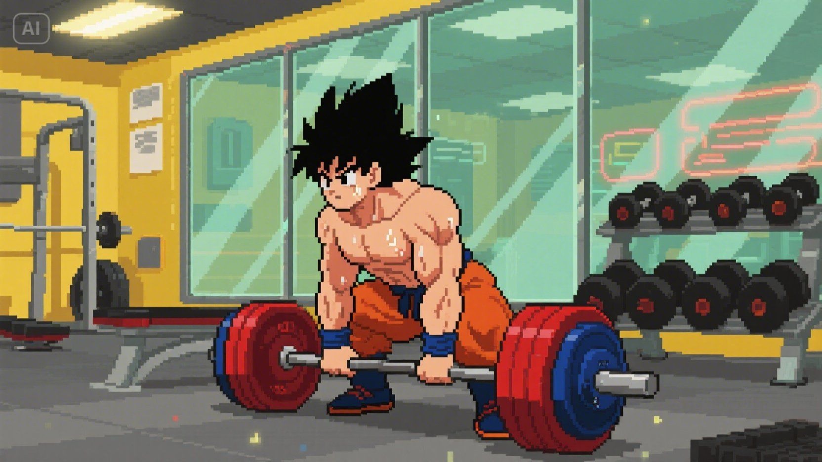 《龙珠》悟空健身房撸铁Vlog,但像素版