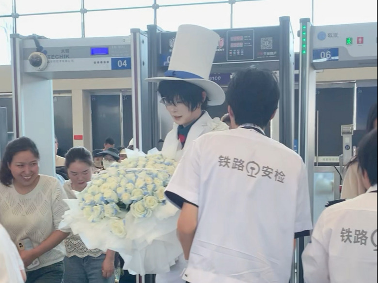 cos基德手捧99朵玫瑰坐高铁是一种什么 体验