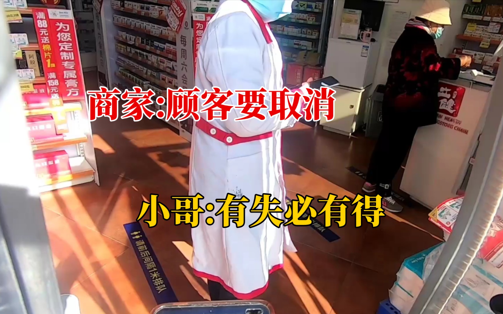 外卖小哥刚到药店,顾客就要取消订单,祸福相依有失有得!