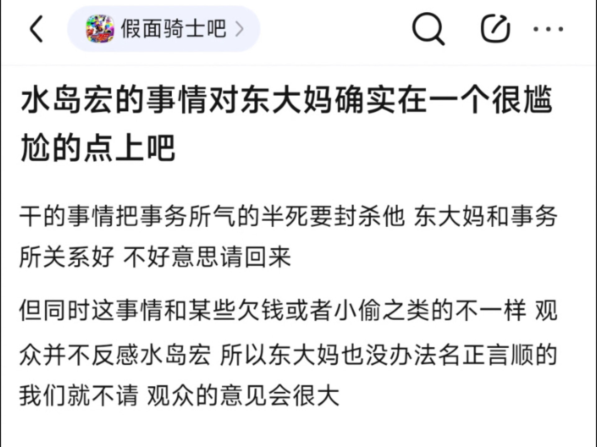 水岛宏的事情对东大妈确实在一个很尴尬的点上吧