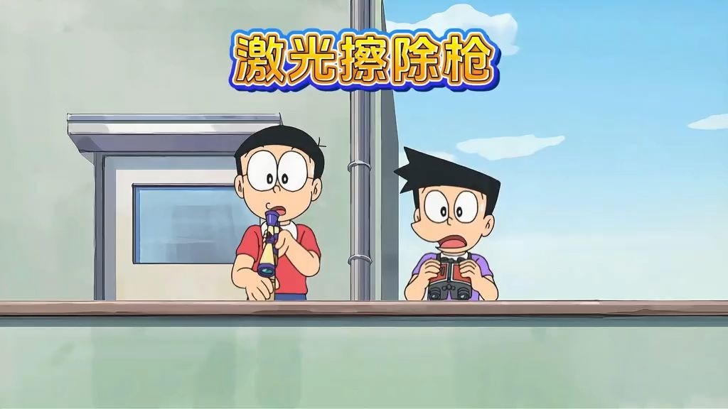 大雄和小哆啦将自己精心设计的烟花图案,投放进烟花制造机