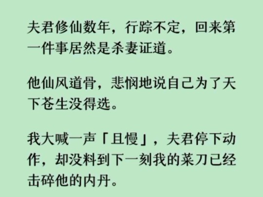 (已完结)我大喊一声「且慢」,夫君停下动作,却没料到下一刻我的菜刀已经击碎他的内丹