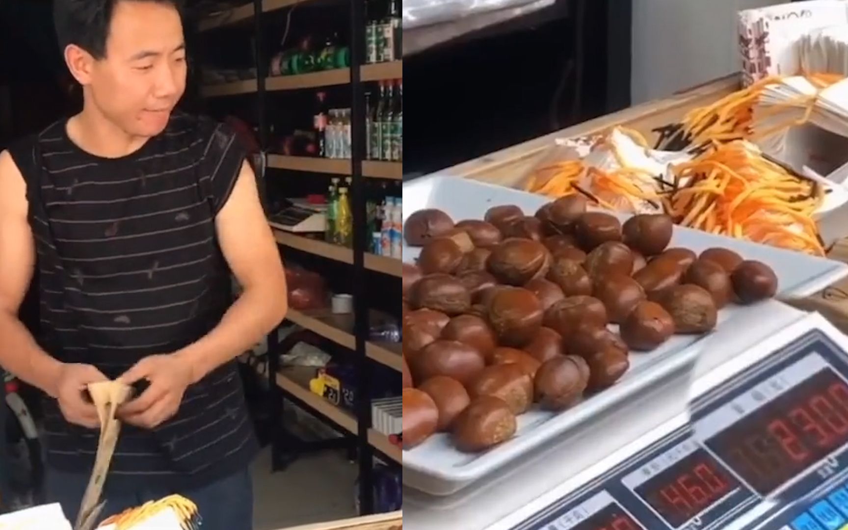 男子卖板栗用手称重,上下错一块免费送,网友傻眼:这称是声控的?