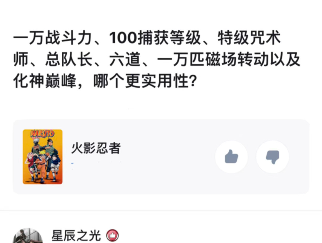 一万战斗力、100捕获等级、特级咒术师、总队长、六道、一万匹磁场转动以及化神巅峰,哪个更实用性?