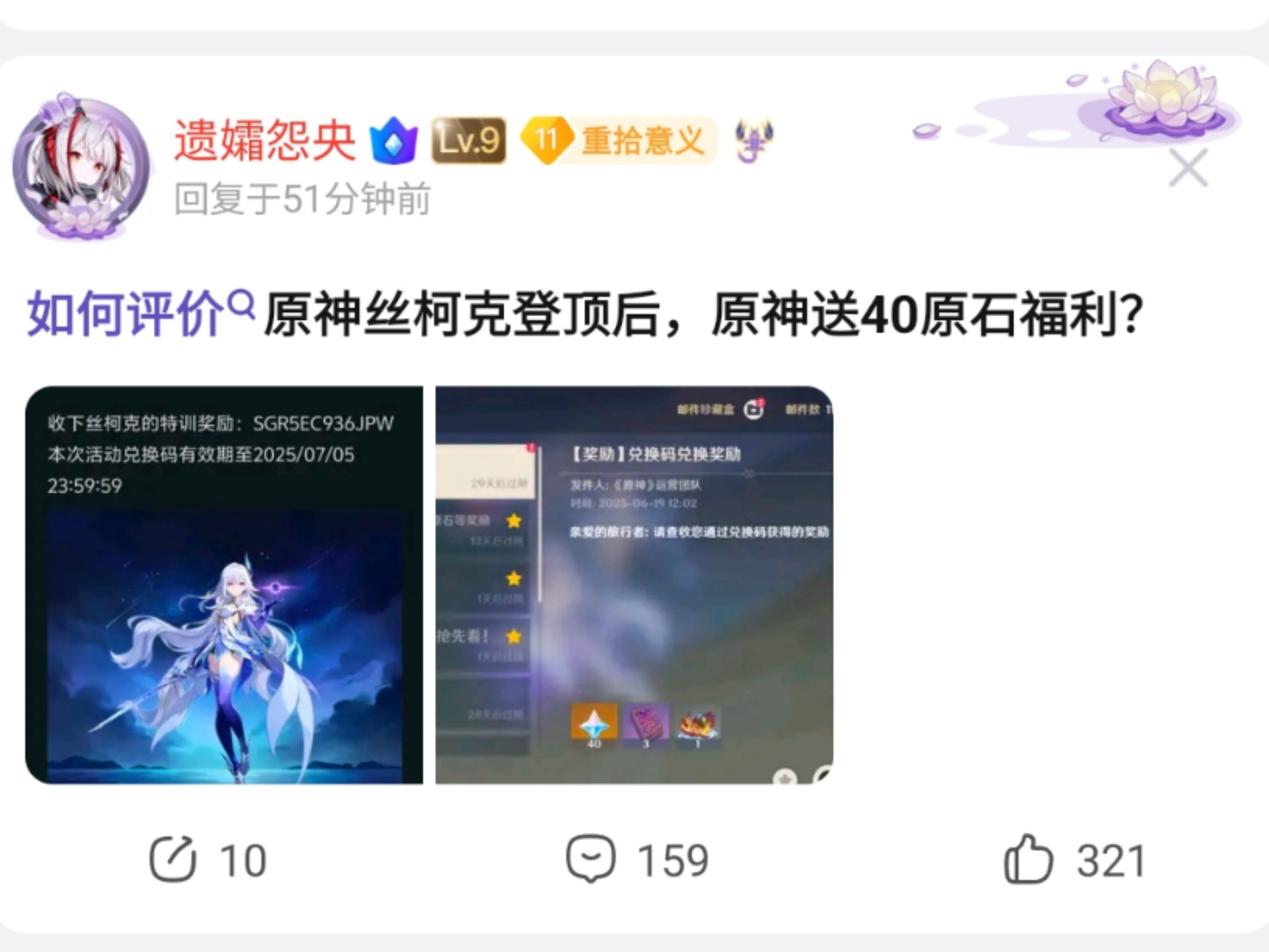 8U:如何评价原神丝柯克登顶后,送40原石福利