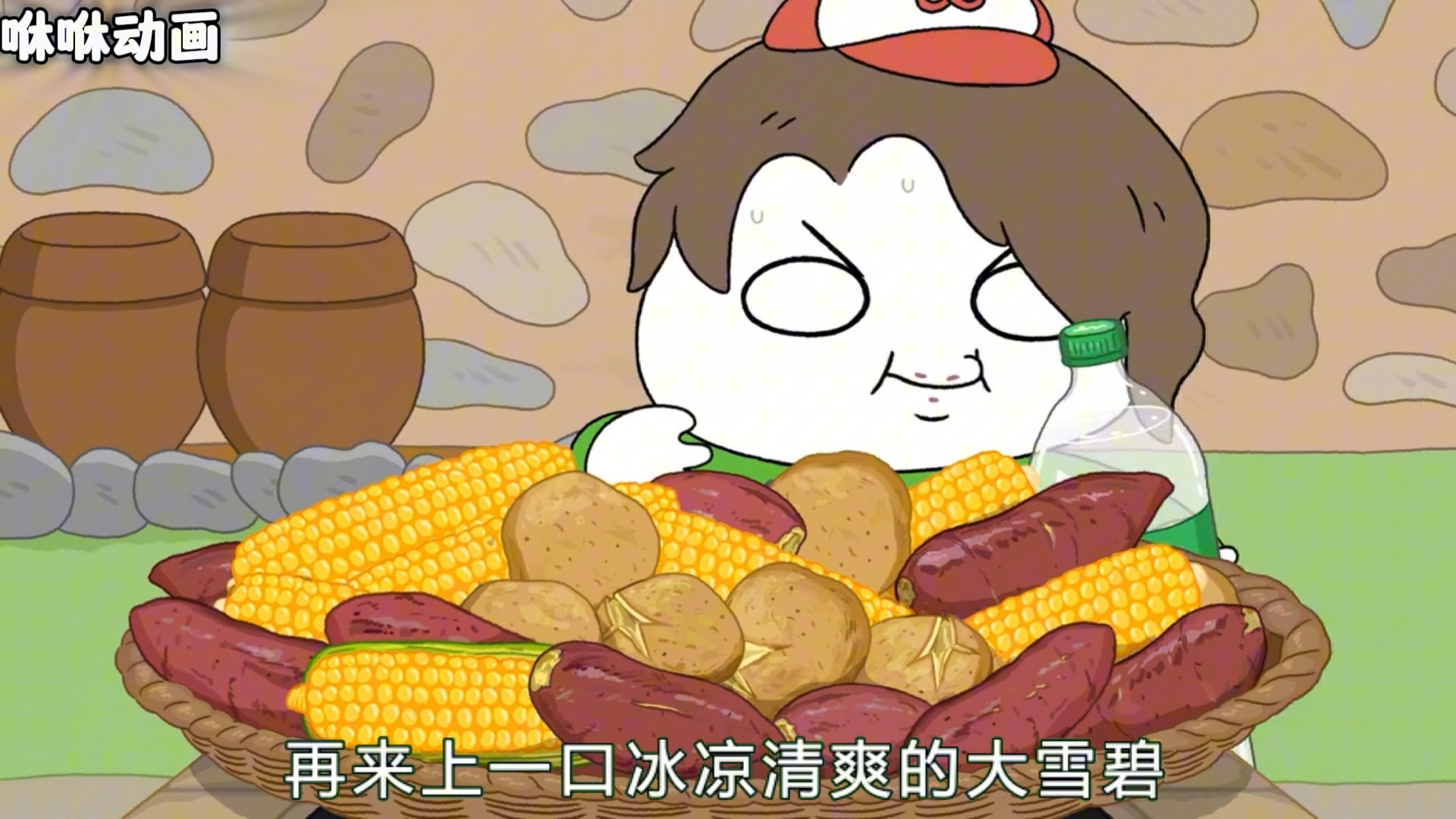 奇怪猫咪的动画吃播!(牛肉泡菜便当、大拌饭)