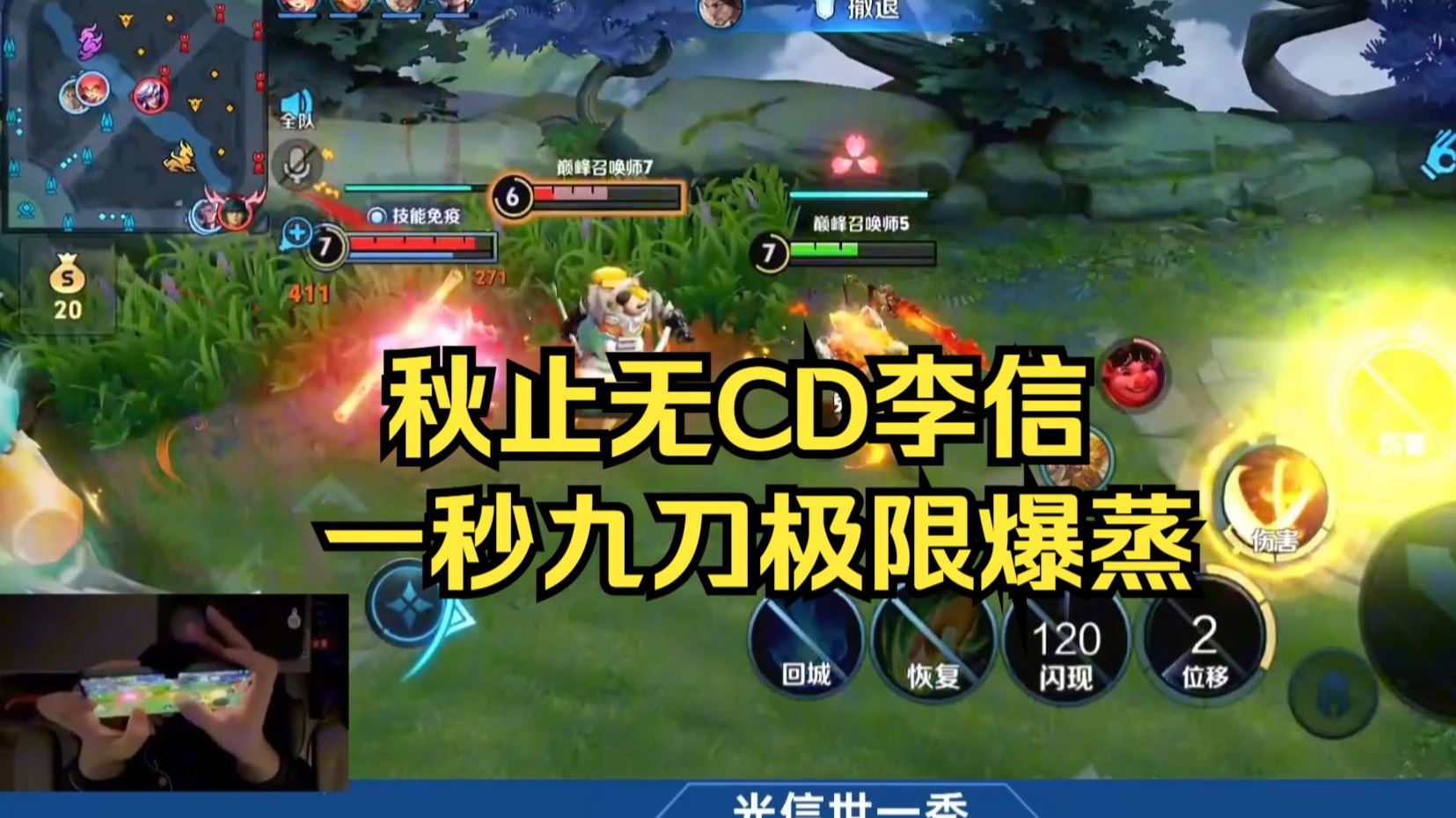 秋止无限连李信一秒9刀!无敌爆炸螺旋乱秀