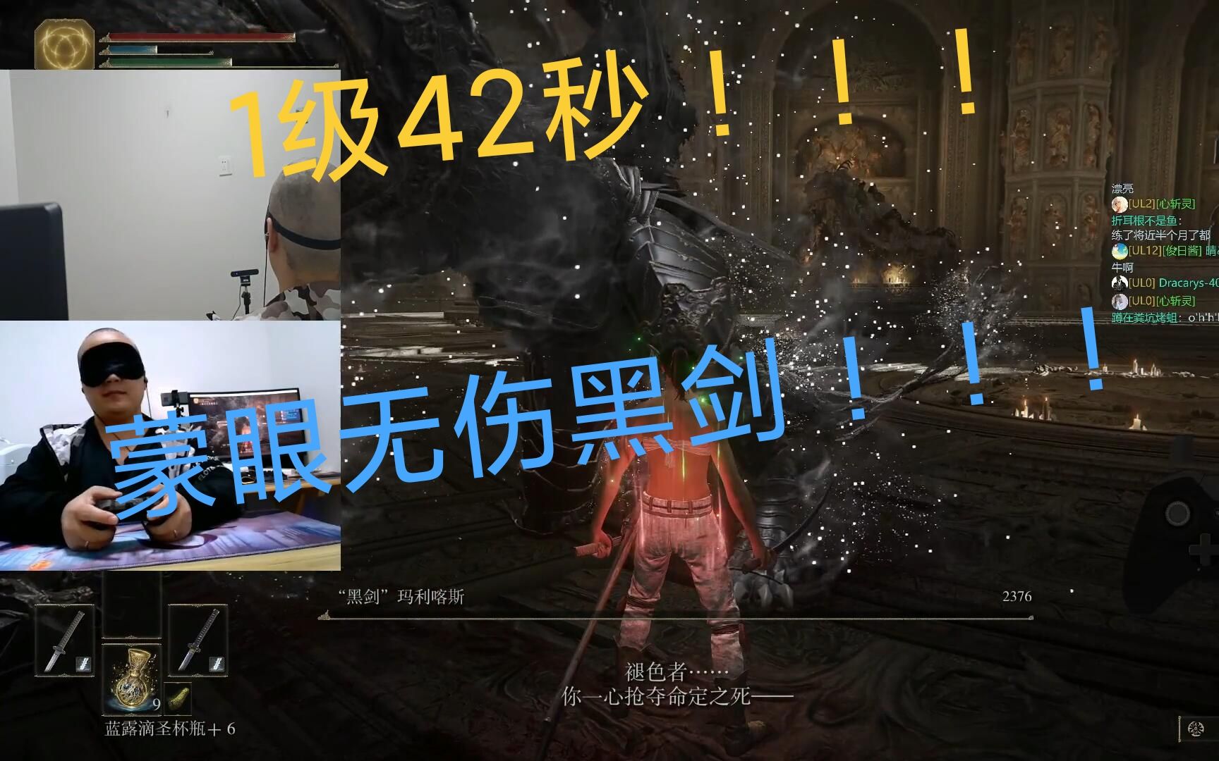【艾尔登法环】1级无用之人,42秒蒙眼无伤黑剑!!!