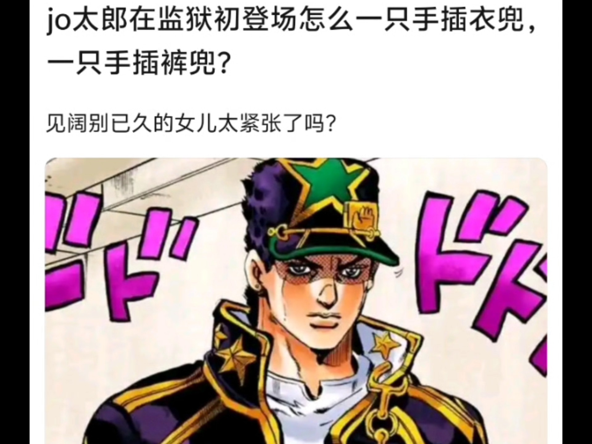 jo太郎在监狱初登场怎么一只手插衣兜,一只手插裤兜?